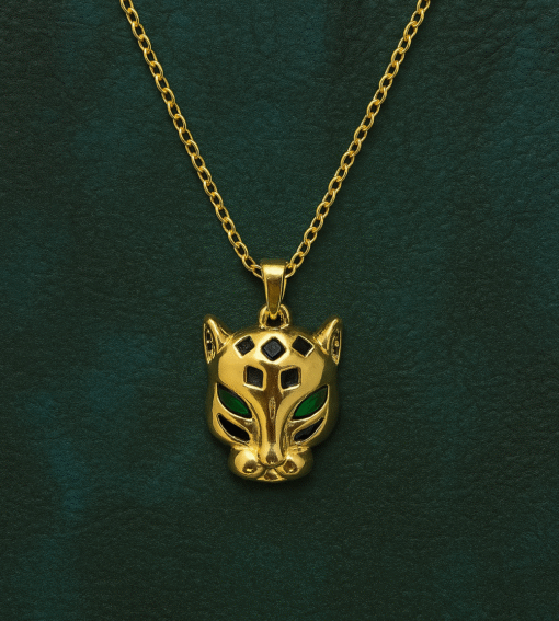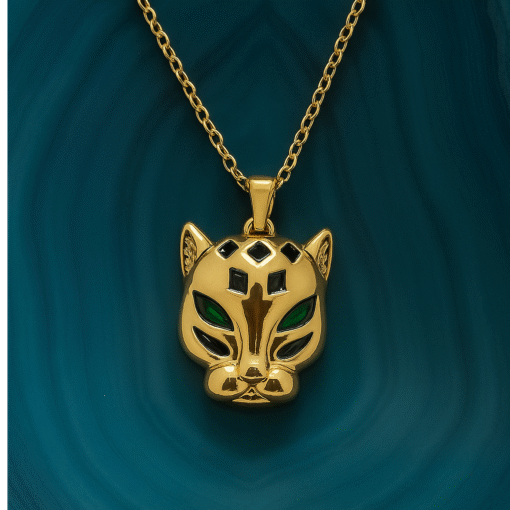 Unleash bold elegance with the Kissmis Anti-Tarnish Panther Charm Necklace. This striking gold-tone necklace features a fierce panther head pendant, detailed with black enamel accents and mesmerizing green eyes. Designed with an anti-tarnish coating, it ensures long-lasting shine and durability. A statement piece that symbolizes strength, power, and confidence — perfect for both casual wear and special occasions.