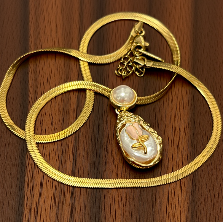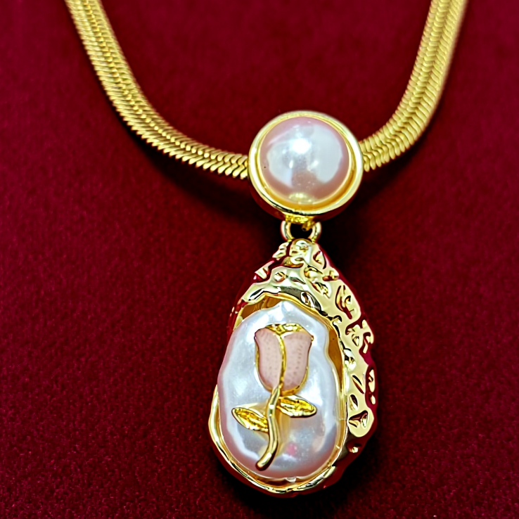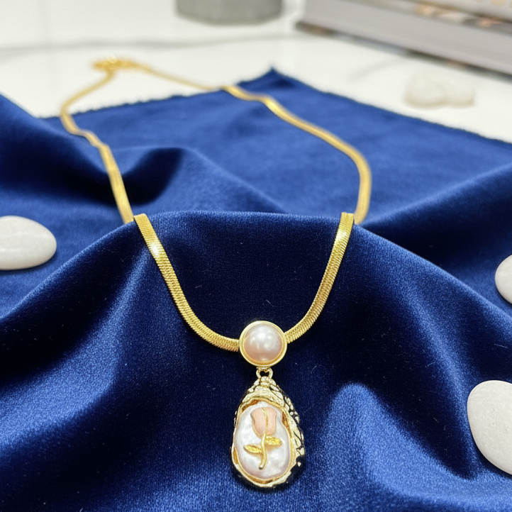 Kissmis Anti-Tarnish Pearl Rose 18K Gold Plated Statement Pendant Necklace