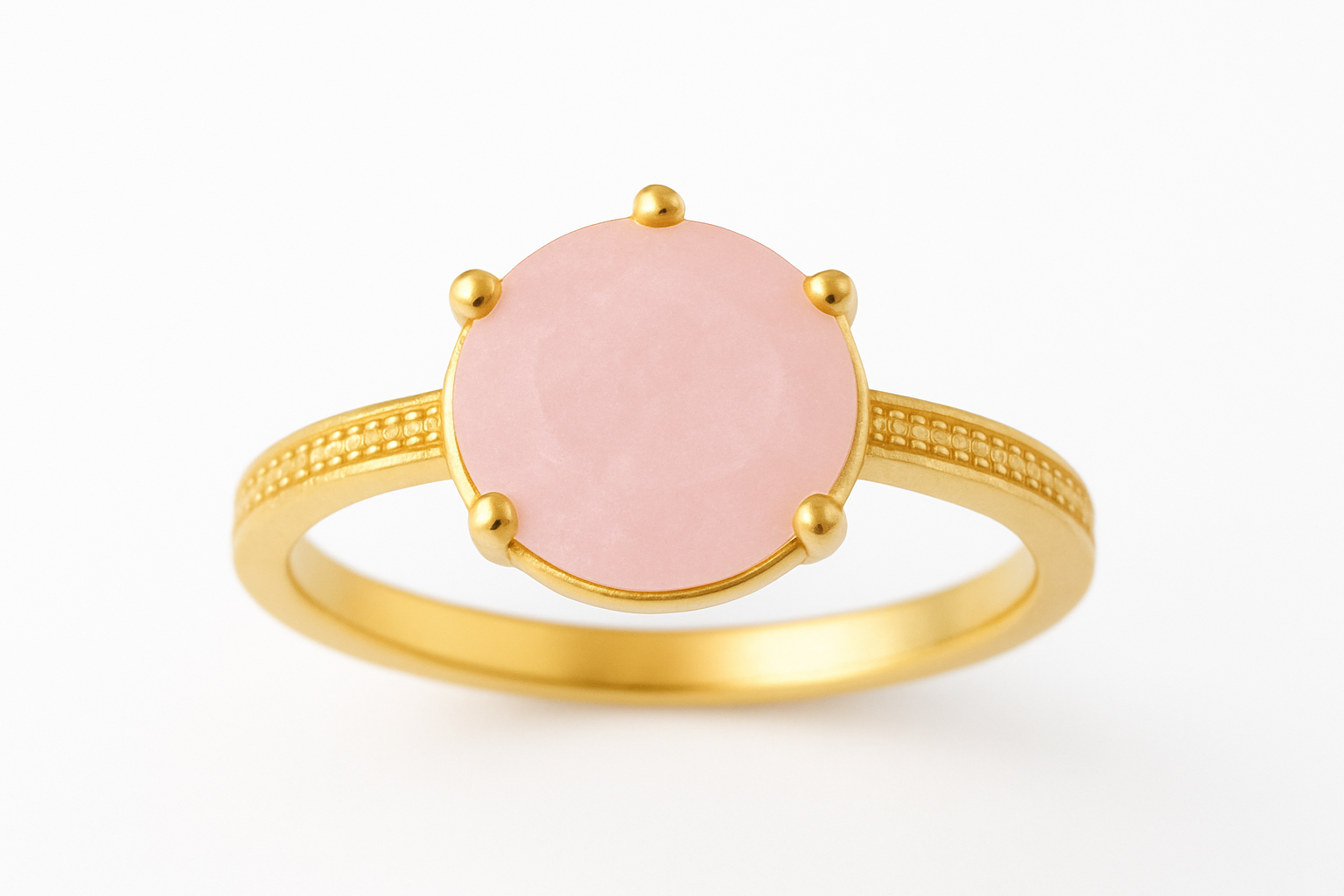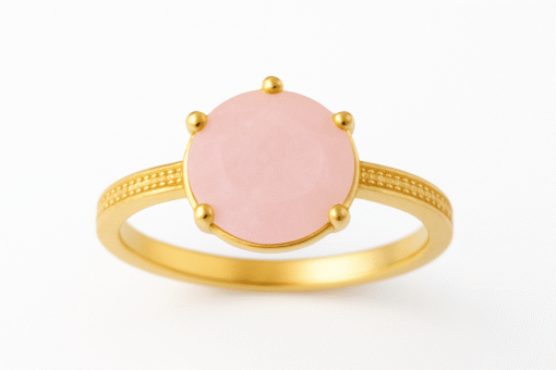 Kissmis Anti-Tarnish Pink Rose Quartz Solitaire Ring – Gold Finish