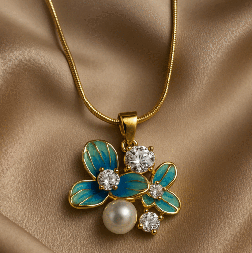 Kissmis Anti-Tarnish AquaBloom Gold-Tone Crystal & Pearl Floral Pendant Necklace