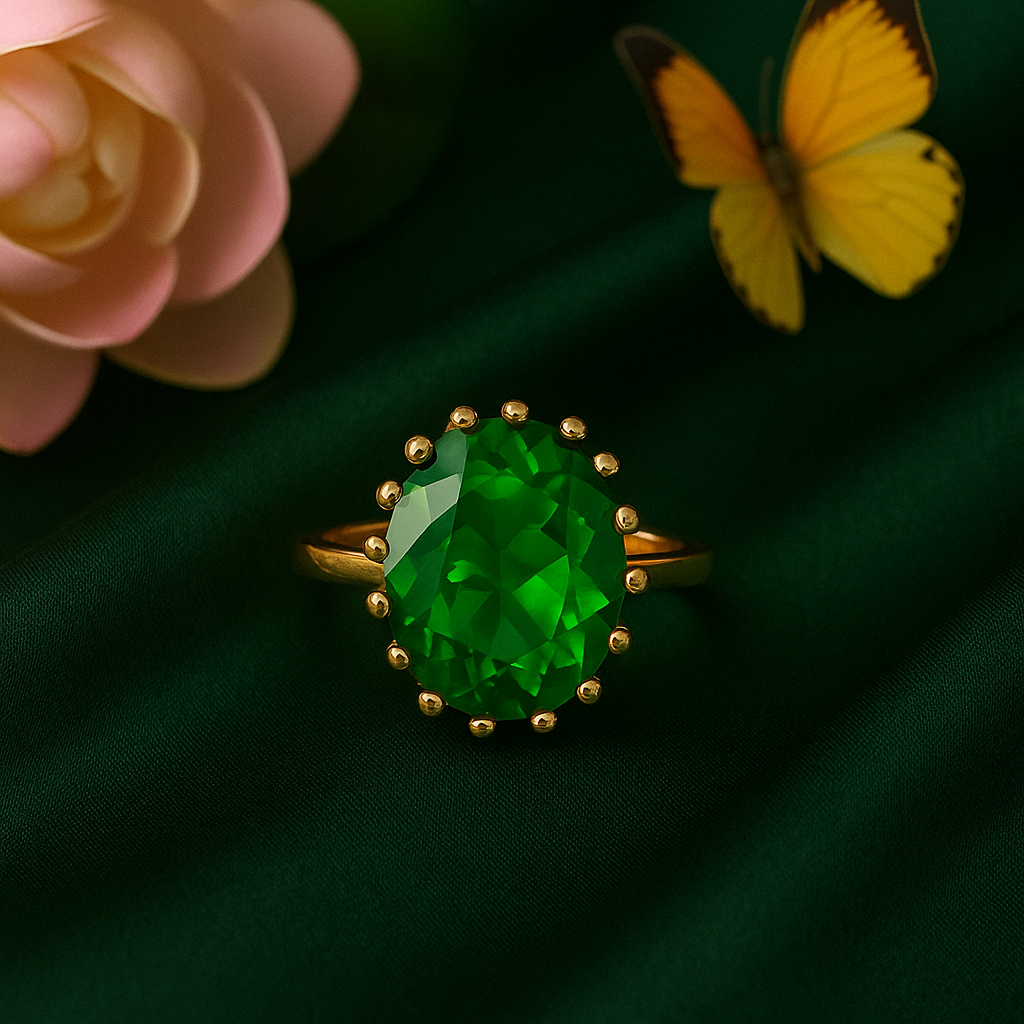 Kissmis Oval Cut Emerald Green Statement Ring – Gold-Tone