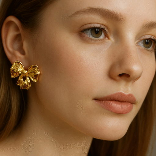 Kissmis Polished Bow Knot Earrings – Gold Finish